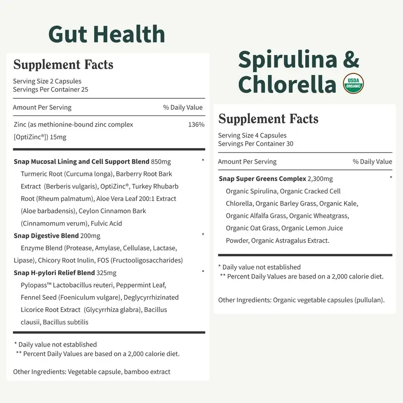 Snap Supplements Gut Health + Spirulina & Chlorella Bundle