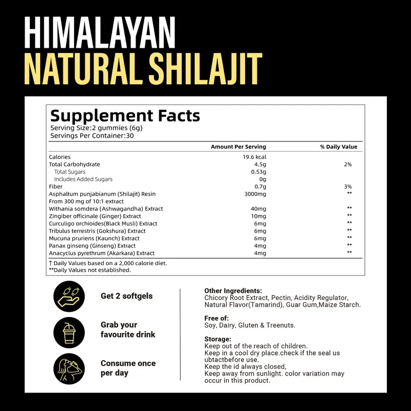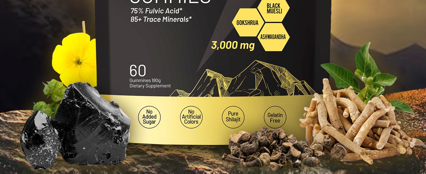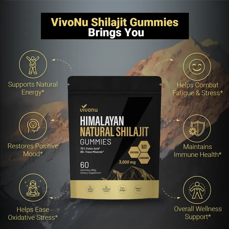 VivoNu Himalayan Shilajit Gummies | With Ashwagandha, Gokshura & other herbs | No added sugar | 60 Gummies mothersdaygift